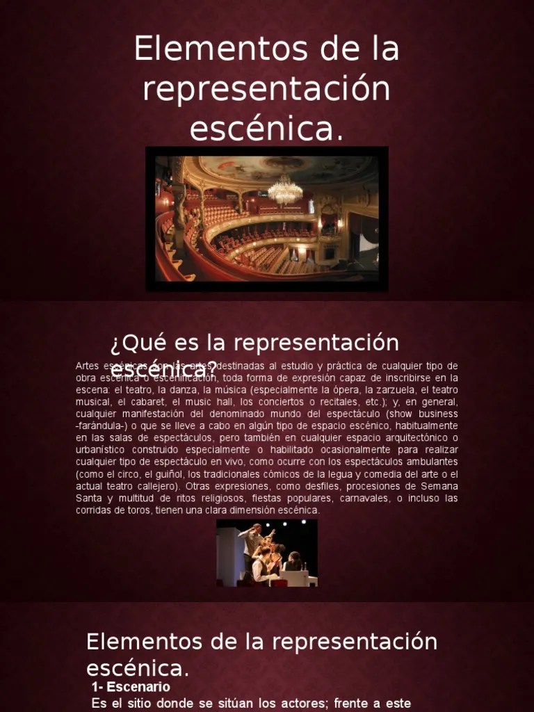01.03.2017 · las artes escénicas, y más concretamente el teatro, han evolucionado en la decoración o el número de actores que representan una obra, pero han mantenido la esencia de sus orígenes, como el espacio arquitectónico, su carácter lúdico y de aprendizaje, y constituir una forma de arte viva y a veces efímera, pero que necesita de un público que disfrute de esa magia. 01.03.2017 · las artes escénicas, y más concretamente el teatro, han evolucionado en la decoración o el número de actores que representan una obra, pero han mantenido la esencia de sus orígenes, como el espacio arquitectónico, su carácter lúdico y de aprendizaje, y constituir una forma de arte viva y a veces efímera, pero que necesita de un público que disfrute de esa magia.. Las artes escénicas más importantes son el teatro, la danza y el cine.en todas ellas se tiene como objetivo crear o componer las llamadas artes del movimiento, e igualmente son llamadas artes mixtas, porque integran todas las demás artes plásticas (arquitectura, pintura, escultura, fotografía, etc.) y acústicas o sonoras (música y literatura).